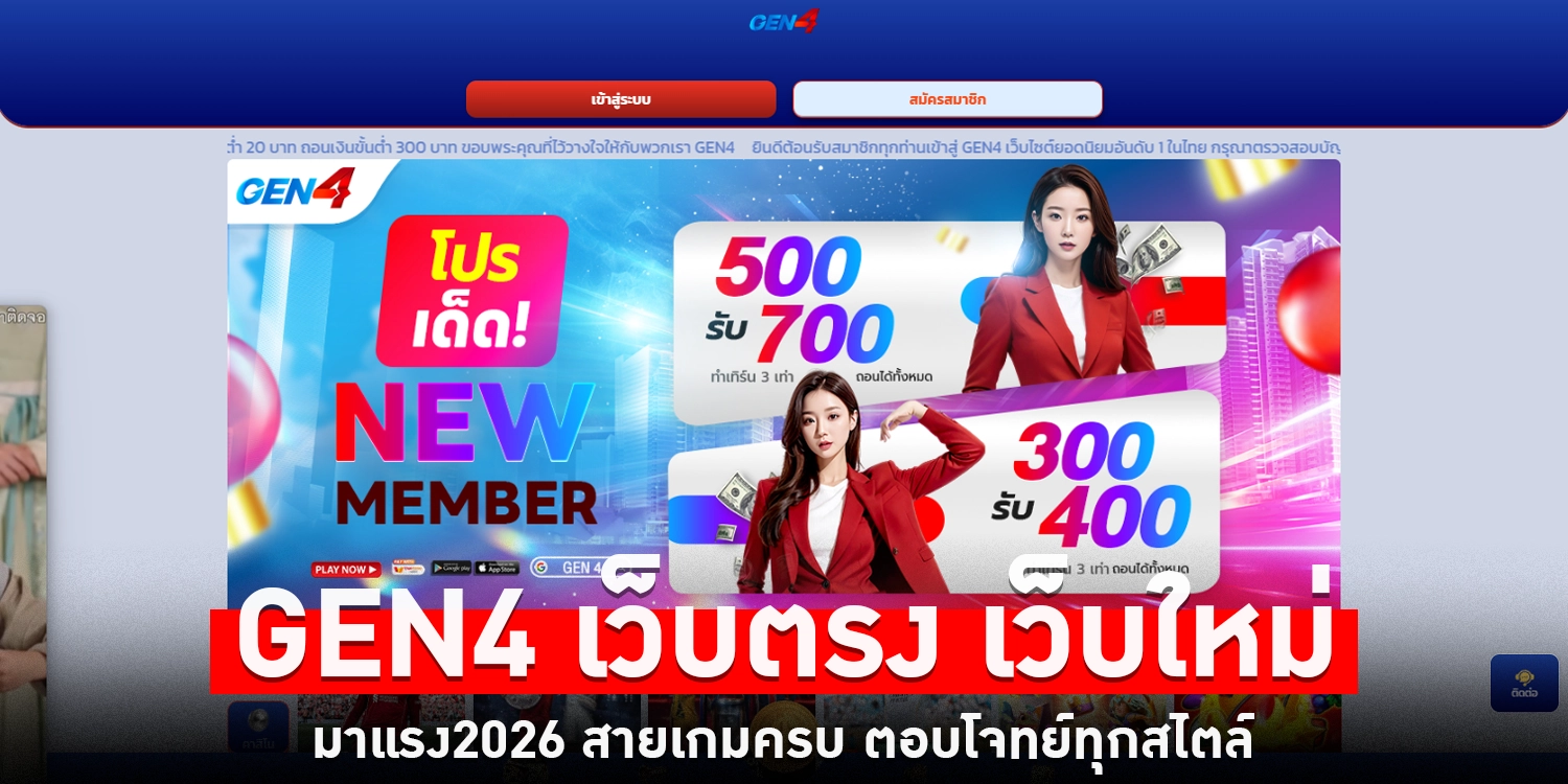 ถ้าคุณกำลังมองหา เว็บตรง เว็บใหม่มาแรง 2026 ที่เกมครบ ระบบเร็ว เล่นง่าย และถอนเงินได้จริง GEN4 คือแพลตฟอร์มที่ตอบโจทย์ทั้งสายสนุกและสายทำเงิน เป็นเว็บที่พร้อมเติบโตและน่าจับตาในระยะยาว